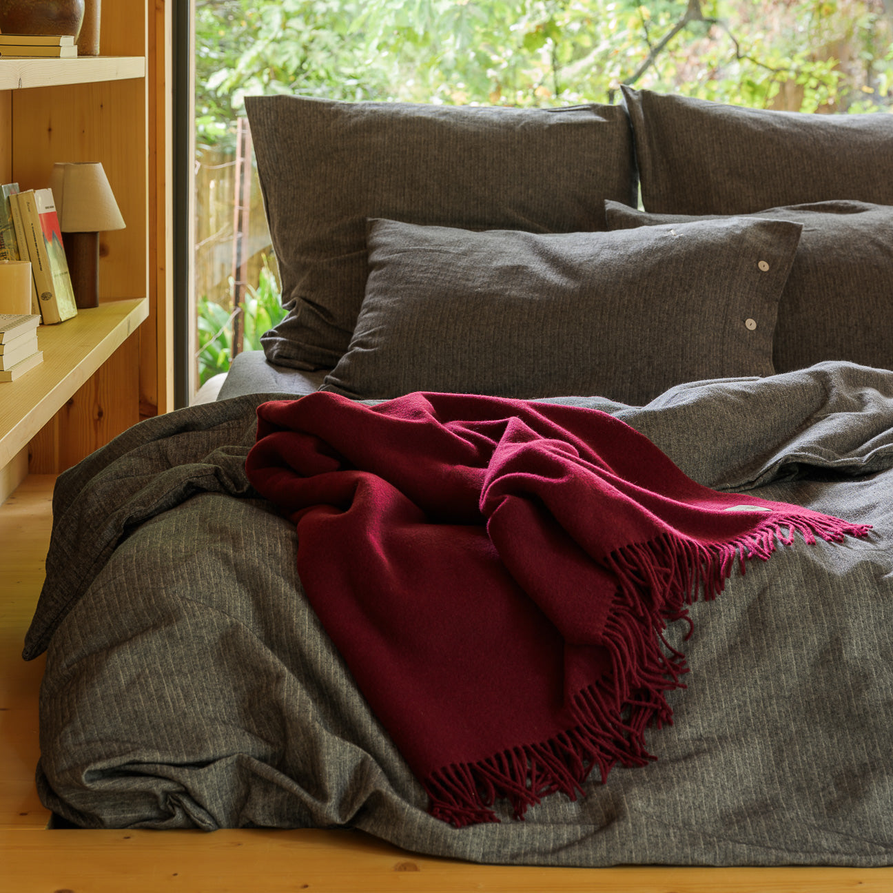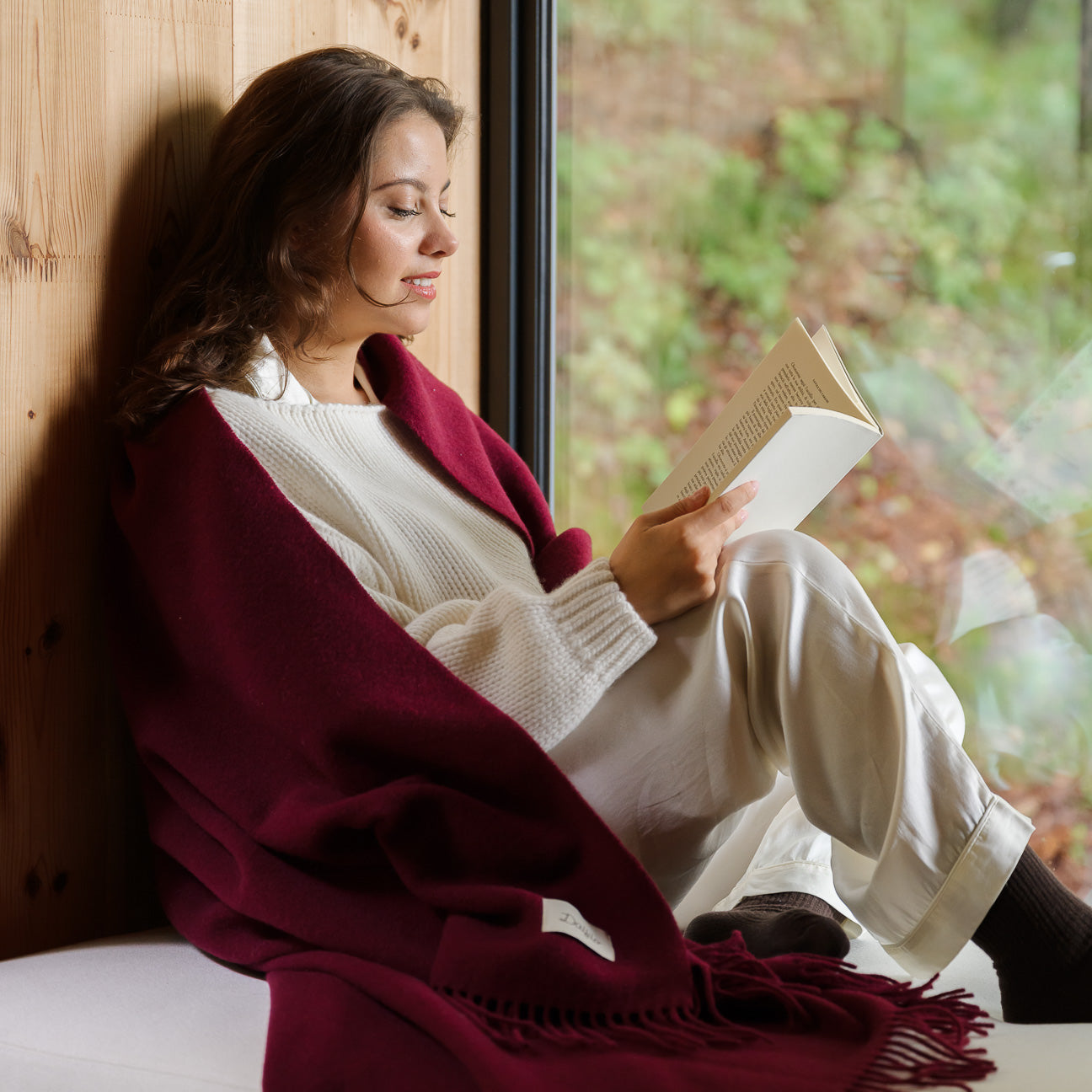 - 1 Decke aus regenerierter Wolle und Kaschmir mit Fransen an den Seiten